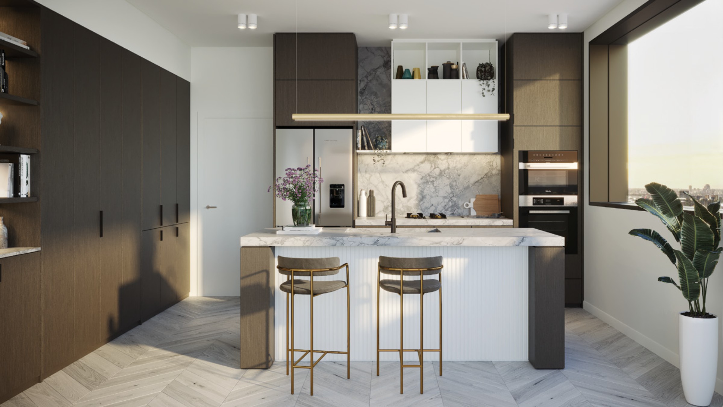 Rising 40 storeys, this flagship tower is home to 252 one, two, three and four-bedroom apartments, sub-penthouses and two showstopping double-storey penthouses.
