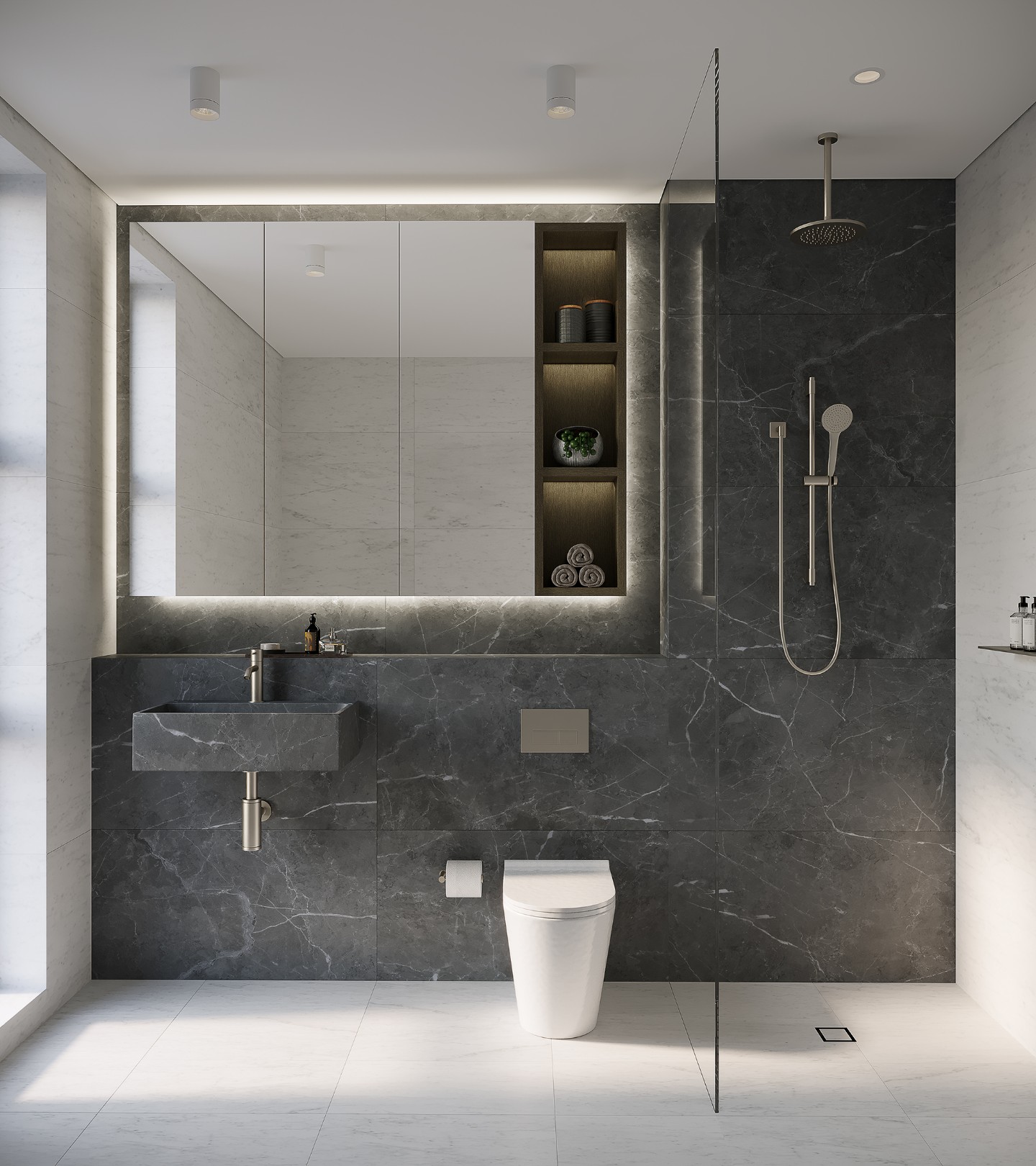 A harmonious balance of form and function, kitchens fuse bold engineered stone benchtops with state-of-the-art Miele appliances and Villeroy & Boch brushed stainless steel tapware. Bathrooms marry marble-inspired porcelain tiles with brushed nickel hardware and Italian-made vanities custom-crafted exclusively for Victoria Place.